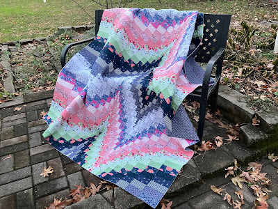 With all the roses printed on the fabrics, I had to quilt Janet’s quilt with a rosebud edge to edge pattern from Urban Elementz in Glide’s Pink Lemonade thread on the top and Glide 60 Sterling thread on the back. She picked it up so soon after I finished that I didn’t have a chance to take my typical outdoor staged photograph. Oh well. It was done, she liked it, and that’s what’s important.